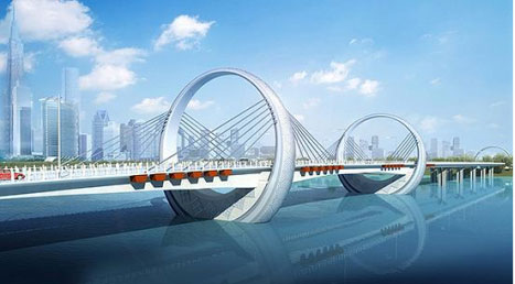 紅壁巖大橋設(shè)計(jì)理念——玉璧連環(huán)(全橋首座鋼圓環(huán)主塔斜拉橋)
